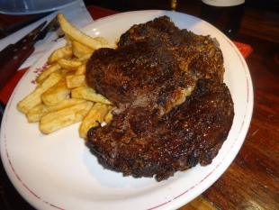 Bife ancho com hueso 800 pesos (R$80,00)