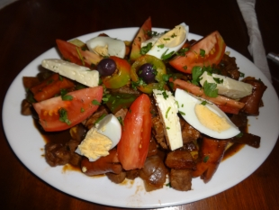 Numa casa dessa naturaleza nada como provar um prato bem típico da Bolivia e assim optamos - por sugestão de Mônica - a um Pique a lo Macho - carne de llama em cubos xadrez, molho picante, linguiça, queijo, tomate, batatas, cebola e azeitonas pretas.