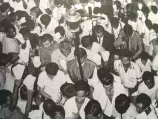 A gente ficava de butuca esperando a hora que o padre Demócrito anunciava os cânticos ao Senhor Deus Misericórdia e as pessoas se ajoelhavam, só homens porque nessa época só homens participavam da procissão, e soprava as velas e saia correndo pelo meio do povo.