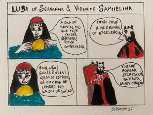 E, em sendo assim, por agradecimento a distinta senhora leitora de pensamentos do futuro, competente gestora do seu sitio de magias onde receita soluções para cornos, invejosos e outros, e aponta roda da foruna para muita gente, o Lubi promete que, em sendo eleito e chamado de Excelência, lhe arranjá um emprego como secretária da pasta da Advinhação, uma vez que existem muitas pastas nos governos e mais uma; menos uma não faz a menor diferença.