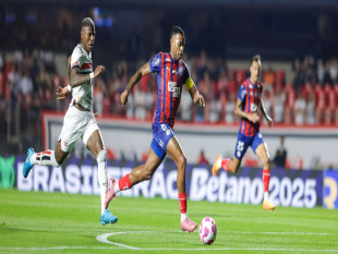 - Aos 23’, chute de longe de Nestor, desviou na zaga. O Bahia, a despeito das lesões inesperadas, mais aceso, embora marcasse mal, também errando passes na transição defesa-ataque. Aos 27’, uma bomba de Tápia, Ronaldo trabalhando. Aos 31’, Juba fez boa jogada pela esquerda, mas Kayky foi travado na finalização. Os sampaulinos mais plantados, sem pressa, apostando nos contragolpes, sempre perigosos. Aos 42’, Tápia entrou livre, de cara, mas parou na boa saída de Ronaldo. Aos 50’, novamente Ronaldo