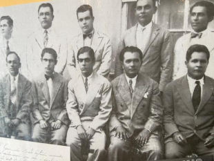 1932, meu pai, 22 anos, sentado (centro) diretor da Filarmônica, junto com meu avô, 42 (esquerda)