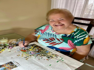 Aos 92 anos, encontrou na pintura terapêutica numerada um novo propósito. Além de uma atividade de estímulo cognitivo, se tornou motivação para realizar algo diferente, trazendo grande alegria e bem-estar emocional.