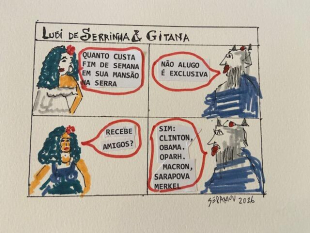 A top modelo Gitana liga da Colombia, salvo engano, para o Lubi de Serrinha - mais famoso lobisomem da Bahia - querendo saber quanto custa passar um fim de semana em sua mansão na Serra, com 18 quatros, campo de golfe, piscina aquecida, salão de jogos, etc, etc, e o camarada diz que não aluga por dinheiro nenhum.