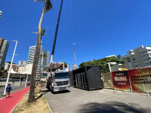 Os camarotes no circuito Barra-Ondina já estão sendo montados para o Carnaval. São estruturas imensas com uma movimentação enorme de caminhões, operários, guiindaste, placas de ferro, etc, mas não há sinalização para os pedestres, as pessoas que fazem cooper no local, nada.