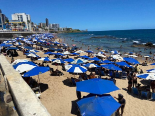 A praia do Farol da Barra, em Salvador, também está semi privatizada - menos que o Porto - mas os preços para ocupar uma cadeira embaixo de um sombrero azul é o mesmo R$25,00. Se tiver cara de turista ou for turista estrangeiro - nessa época do ano aparecem alguns argentinos - sobe um pouco mais. Tudo é negociado. Se a pessoa sabe falar portunbhol tudo se ajusta.