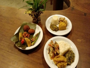 Prato: comida baiana acompanhada de xinxim de galinha ou moqueca de peixe