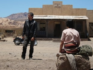 A Oeste Do Fim Do Mundo, de Paulo Nascimento, Argentina/Brasil, 2014. Estamos na Argentina em um velho posto de gasolina perdido na imensidão da antiga estrada transcontinental que é o refúgio do introspectivo Leon (César Troncoso). De poucas palavras, poucos gestos e nenhum amigo. Sua solidão só é apenas quebrada por um ou outro caminhoneiro eventual que passa por ali para abastecer. Ou pelas visitas sempre bem humoradas do sarcástico Silas (Nelson Diniz), um motociclista com ares de hippie aposentado.