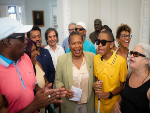A ministra da Cultura Margareth Menezes visitou a Academia de Letras da Bahia (ALB) para a entrega simbólica da obra de conservação e restauro do Palacete Góes Calmon, sede da instituição. No total, foram restauradas mais de 100 portas, janelas e esquadrias do imóvel, além de gradis e vitrais. O encontro foi realizado nesta quinta, 29, e contou com as presenças de Maria Marighella, presidenta da Funarte, Henilton Menezes, secretário de Fomento do Ministério da Cultura (MinC), Sandro Magalhães, diretor da Fundação Pedro Calmon (FPC), do presidente da ALB, Aleilton Fonseca, e de outros acadêmicos. Um grupo de pacientes do Instituto de Cegos da Bahia também participou de uma visita mediada ao Palacete como parte do projeto de conservação e restauro.
