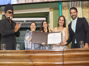 A solenidade, realizada no Plenário Cosme de Farias, contou com a presença do multi-instrumentista e presidente da Pracatum, Carlinhos Brown, que celebrou a entrega da honraria à parceira de trajetória. Durante a cerimônia, o vereador destacou que o título simboliza o reconhecimento de Salvador àqueles que dedicam suas vidas à transformação social e à valorização da identidade local.