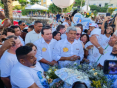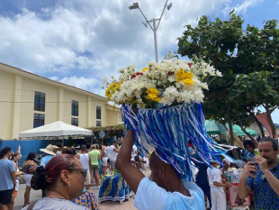 6. O presente permanece no carramanchão até as 16h, quando segue para o mar acompanhado pelos pescadores e pela Iyalorixá do Terreiro Olufanjá, Mãe Nicinha de Nanã, e seus filhos. O cortejo marítimo segue até a Loca de Iaiá, a cerca de três milhas náuticas da costa.