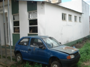 Em Caém, uma viatura velha, caindo aos pedaços com a lataria toda enferrujado pode ser vista por qualquer cidadão na porta do Complexo Policial da cidade.