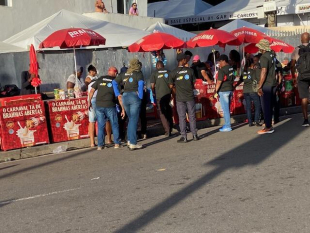 Alguns ambulantes mesmo os credenciados ocuoam espaços indwevidamente e vendem bebidas que não integram o mix do patrocinador do Carnaval e PMS, através da Semop, como se pode ver na foto, age, confisca bebidas e reordena espaços. É uma luta diária, incessante.