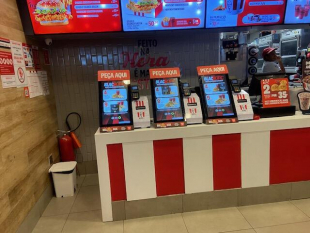 Esta lanchonete de um shopping em Salvador já implantou o atendimento quase todo automatizado na sua loja. Os clientes vêem na fachada os produtos, escolhem o que querem, pagam em caixas sem humanos e depois vão ao balcão da foto e fazem o pedido via maquina.